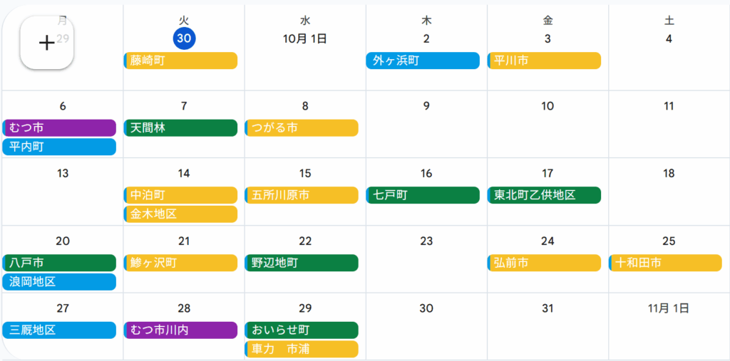天間林地区 | 10/7 | 10:00-12:00 | 天間林 老人福祉センター |